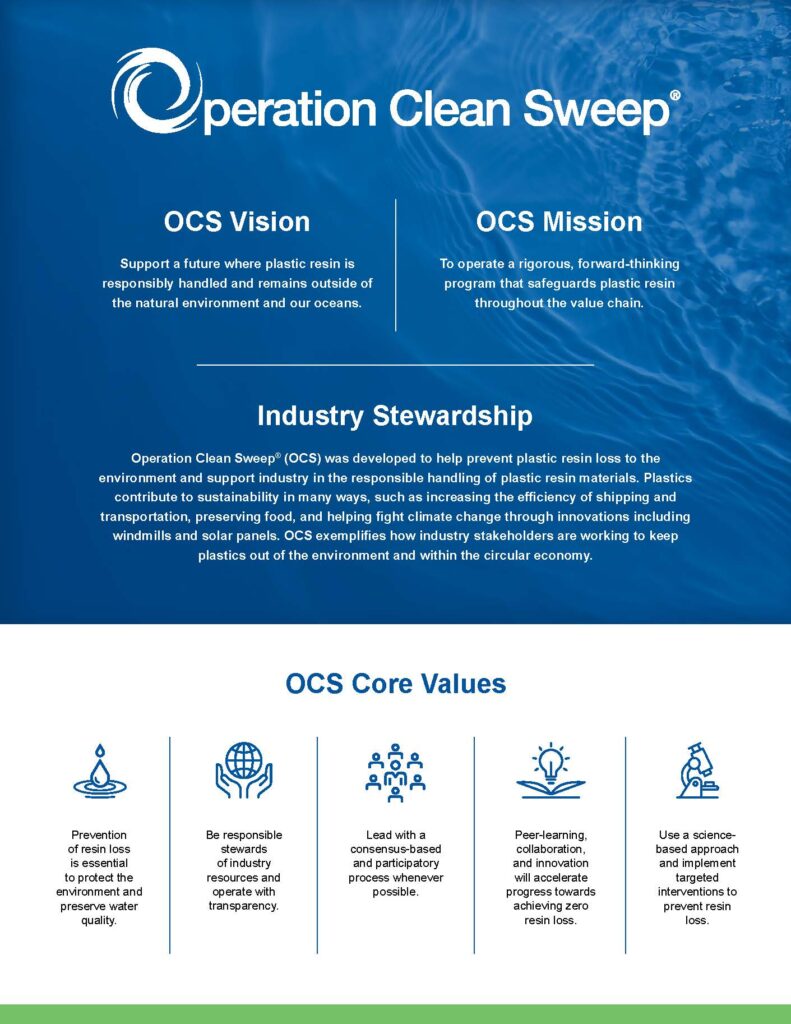 Operation Clean Sweep® (OCS) is a industry-led program that supports companies in their goal towards achieving zero plastic resin loss in operations.
